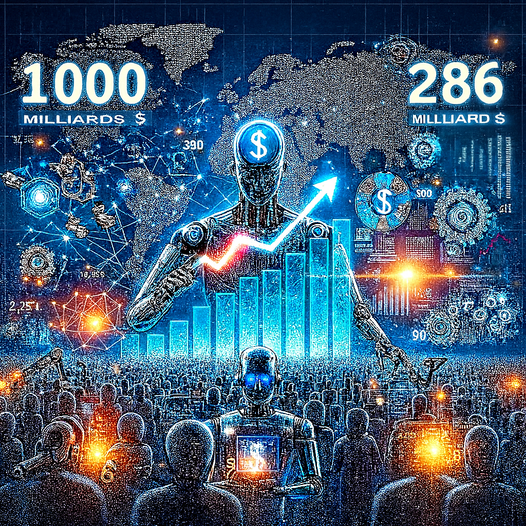 Le marché mondial de l’IA, estimé à plus de 244 milliards de dollars en 2025, pourrait dépasser 1 000 milliards d’ici 2031, tandis que la robotique vise 286 milliards d’ici 2032.